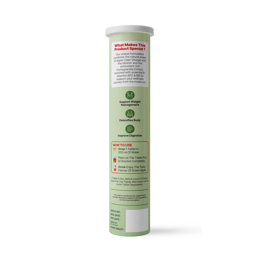 Apple Cider Vinegar 750 mg Effervescent Tablets with Pomegranate & Vitamins.
